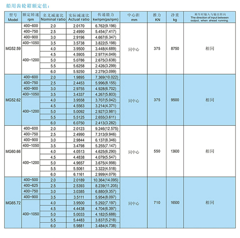 | MG系列大功率船用齒輪箱 | |||