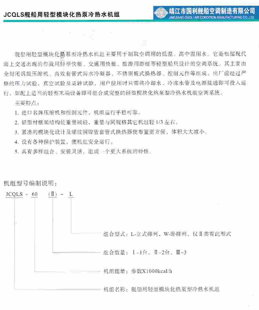 | 艦船用輕型模塊化熱泵冷熱水機組 | |||