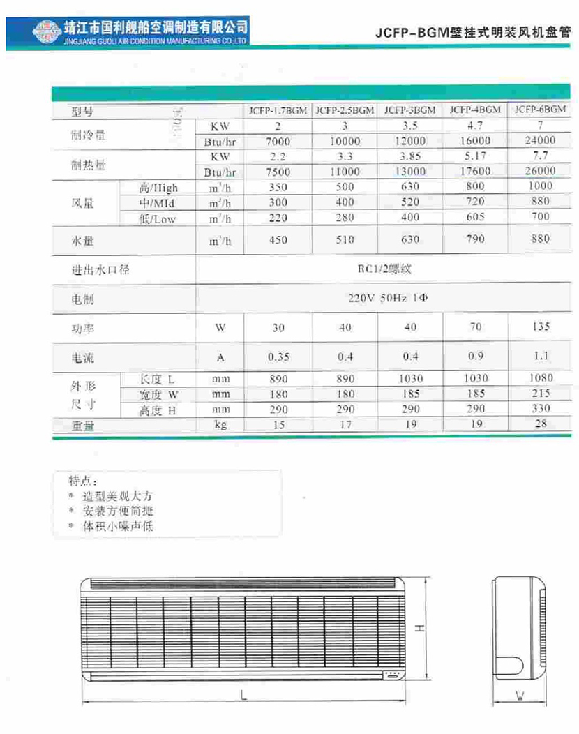 | JCFP系列艦船用超薄型臥式暗裝風機盤管 | |||