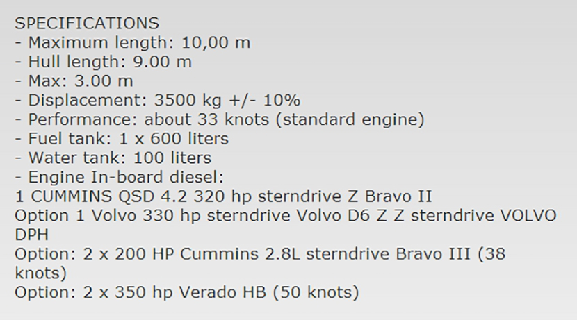 總長: 10.00m 航速: 33kn