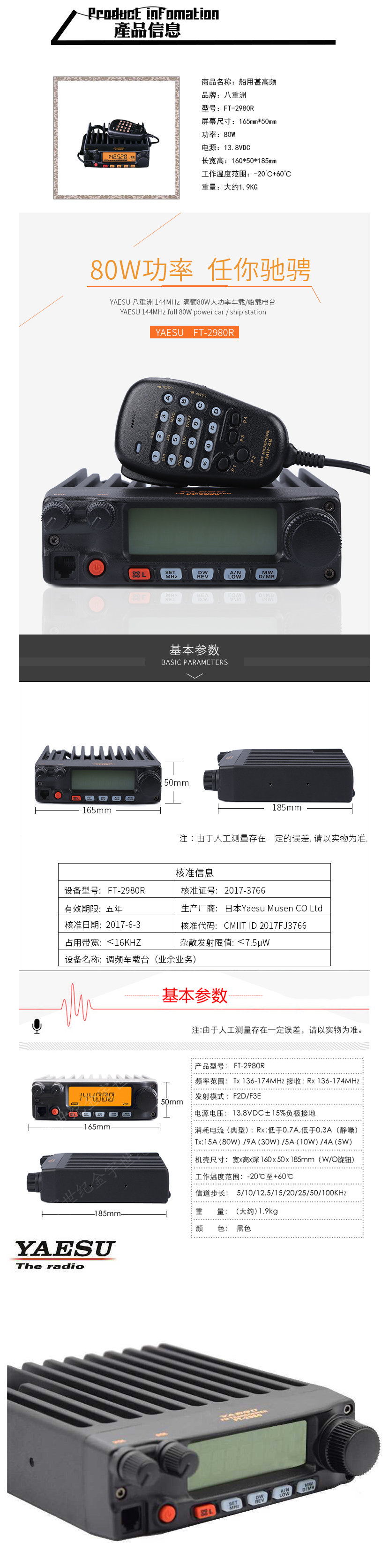 發(fā)射頻率: 136-174MHz 輸出功率: 80W
