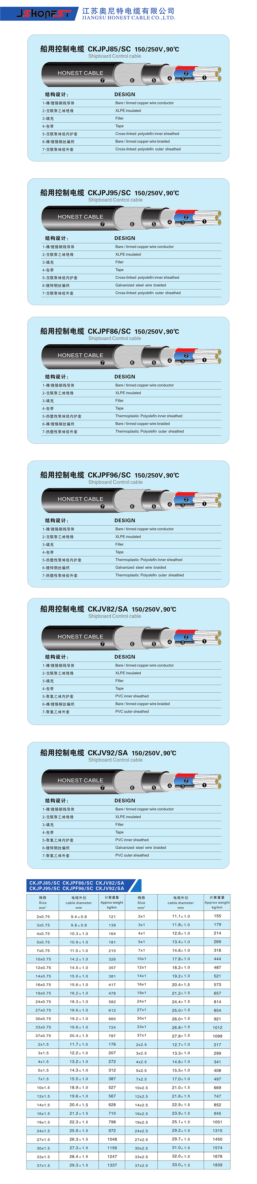 類型: 船用控制電纜 名義直徑: 14.2±1.0mm