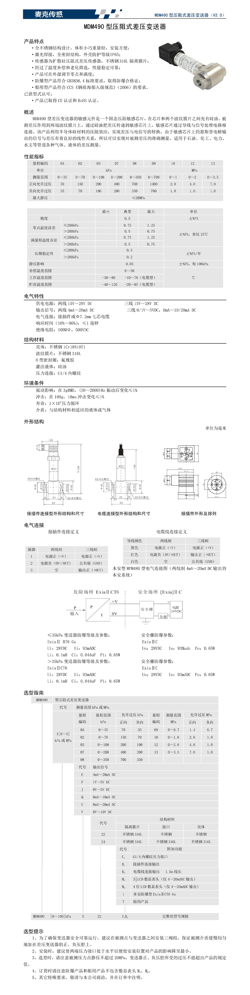| MDM490型壓阻式差壓變送器 | |||