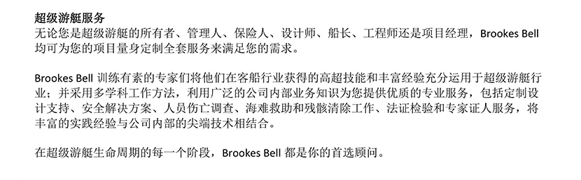 專業優勢: 在客船領域擁有高超技能與豐富經驗;精通門類分布廣泛;可提供整個游艇生命周期全方位服務
