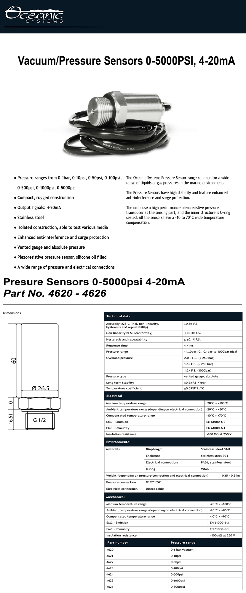 數值類型: NA 最大量程: 1000bar