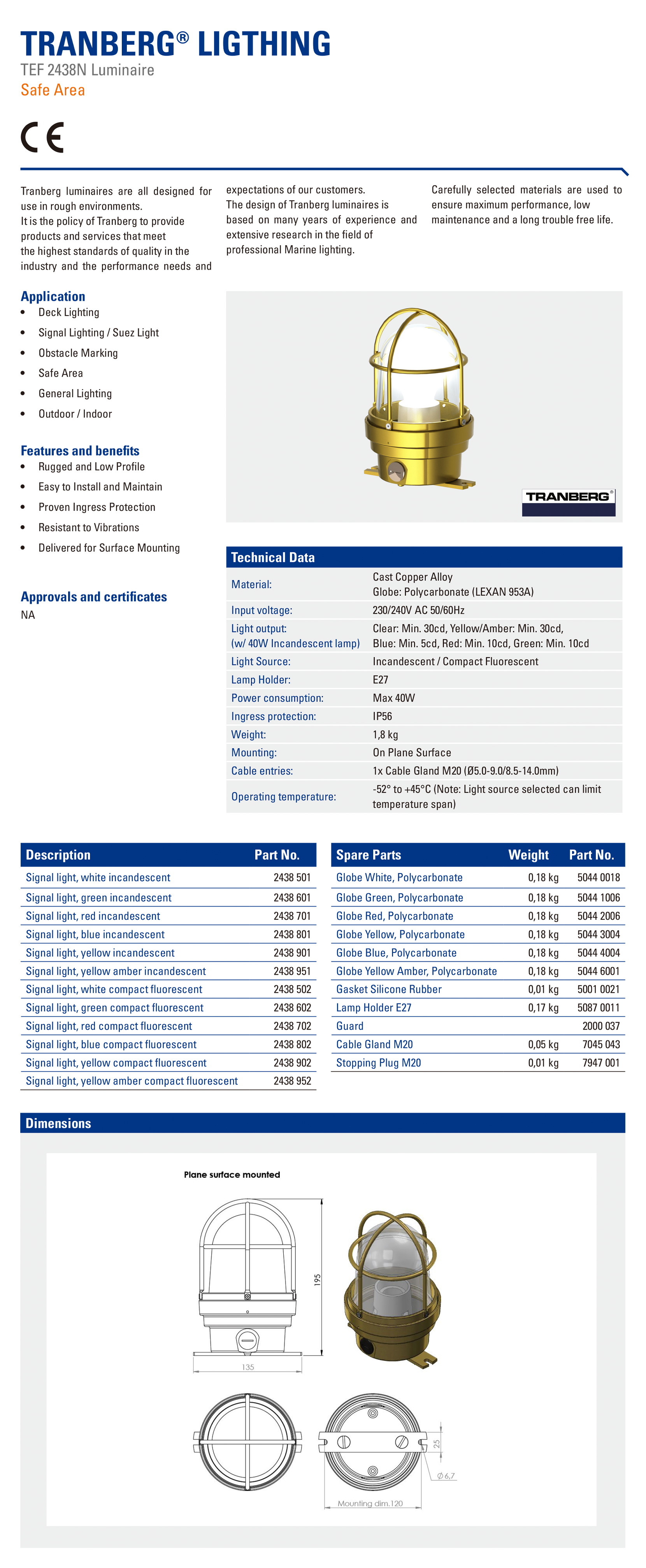 | 電壓: | 230/240VAC | 工作溫度: | -52° to +45°C |